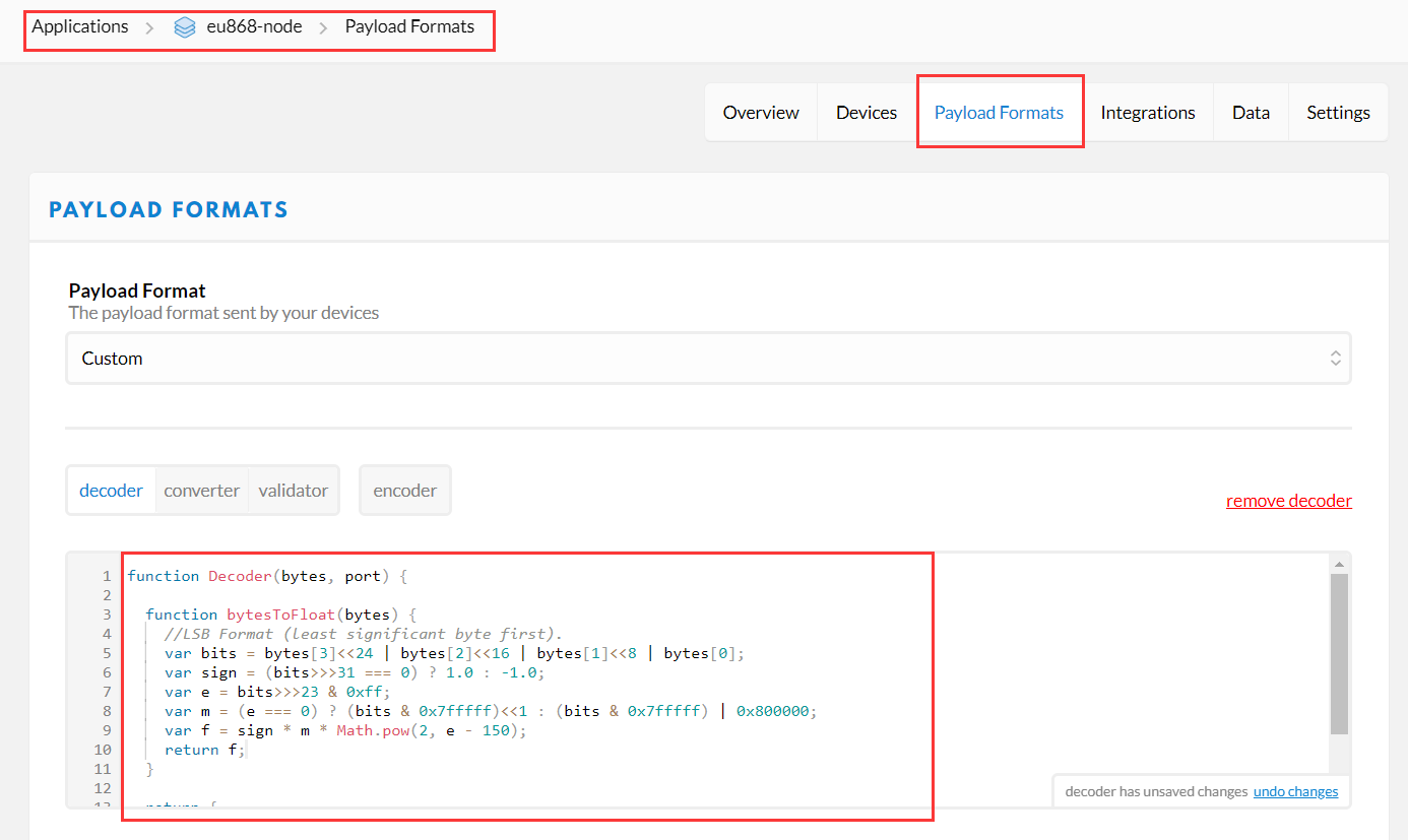 Similar with TTN, add relevant decode script in the Applications -> Node name -> APPLICATION CONFIGURATION