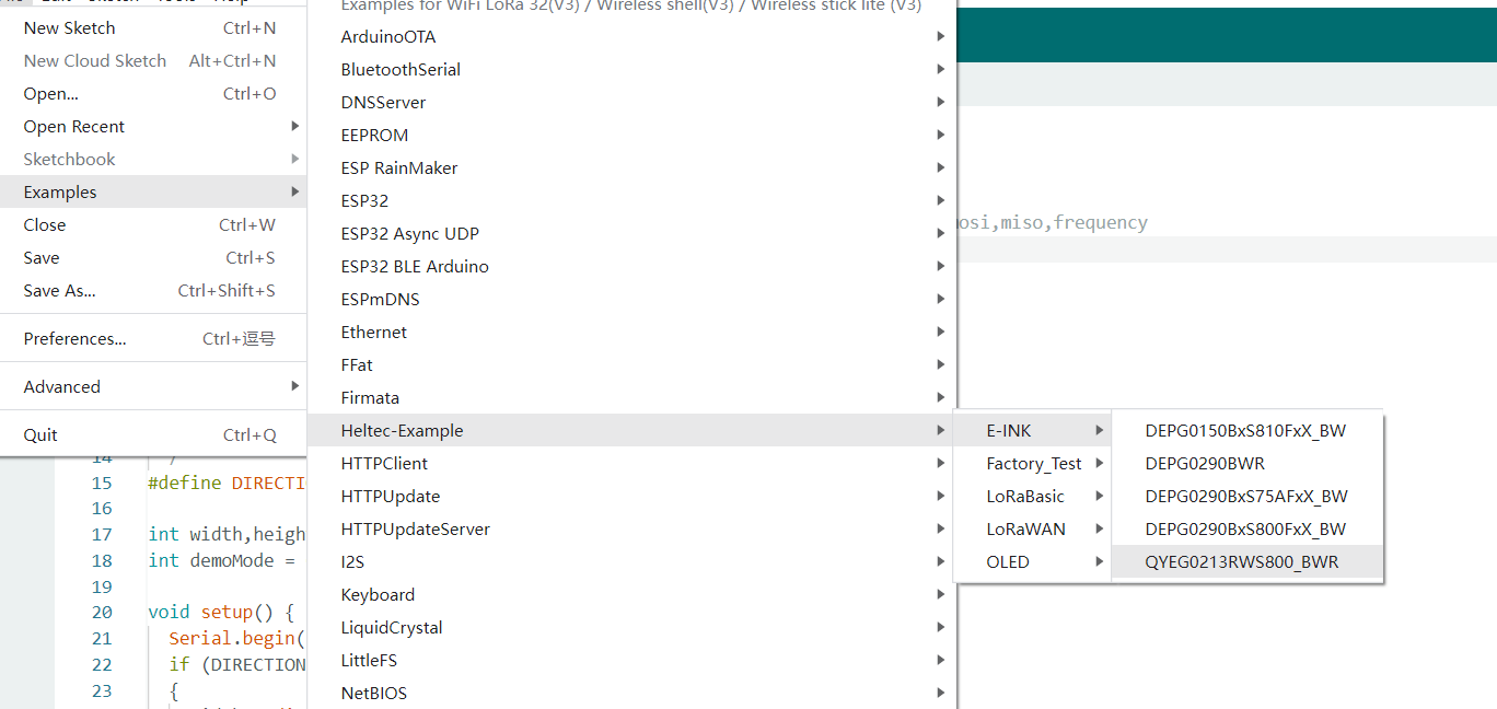 Here, take WiFi LoRa 32 V3 and 2.13 inch black and white red E-ink as an example.