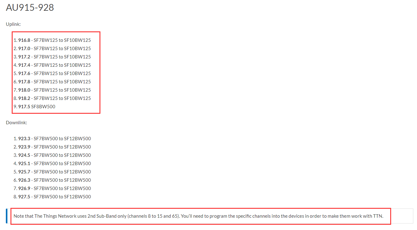 TTN uses 2nd Sub-Band only (channels 8 to 15 and 65) for AU915: https://www.thethingsnetwork.org/docs/lorawan/frequency-plans.html