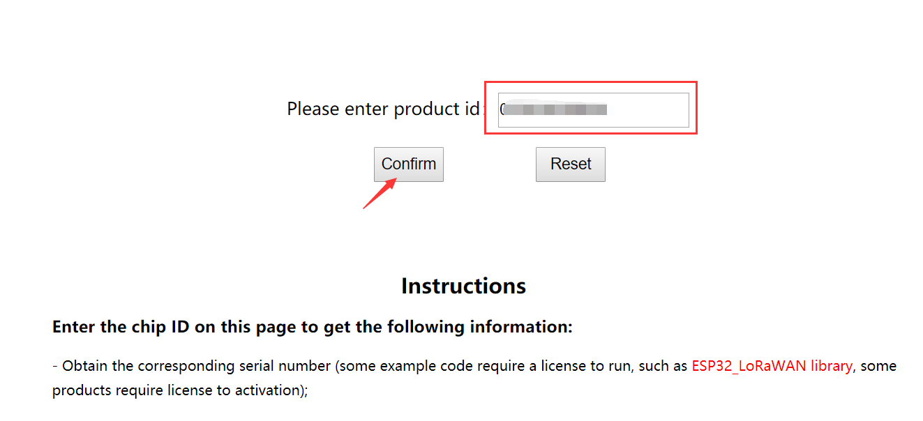 Input the Chip ID in http://resource.heltec.cn/search, and click Confirm
