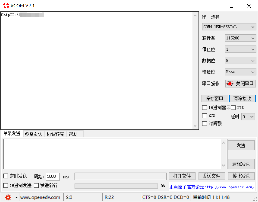 After uploading this sample code, the Chip ID will be printed via serial port: