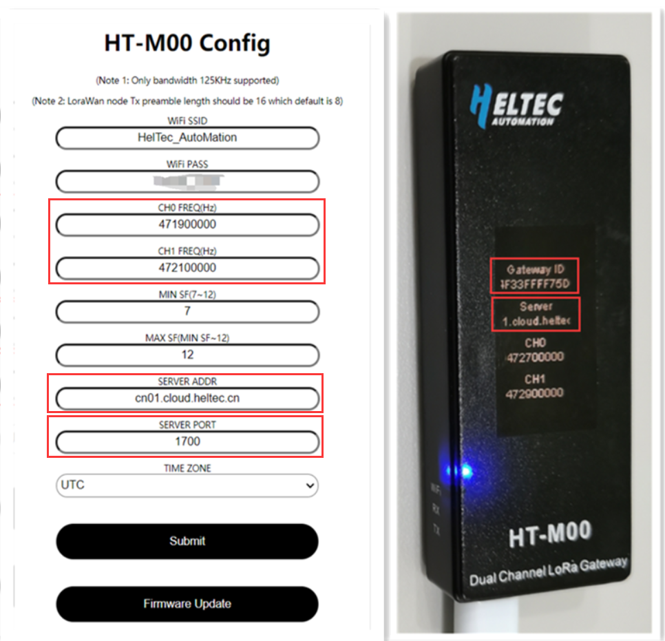 In the HT-M00 gateway, the server address, port, frequency band, and channel need to be configured. The server address, port, frequency band and channel are configured in the "HT-M00 Config" interface, please refer to the HT-M00 Quick Start document.