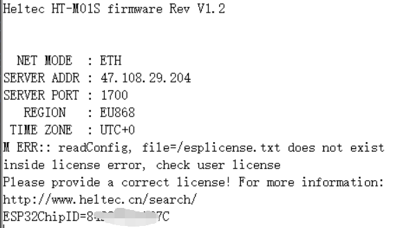 After the firmware download is complete, open the serial port corresponding to the HT-M01S (Rev. 2.0) and read the corresponding ESP32 chip ID of the gateway. Baud rate is 115200.