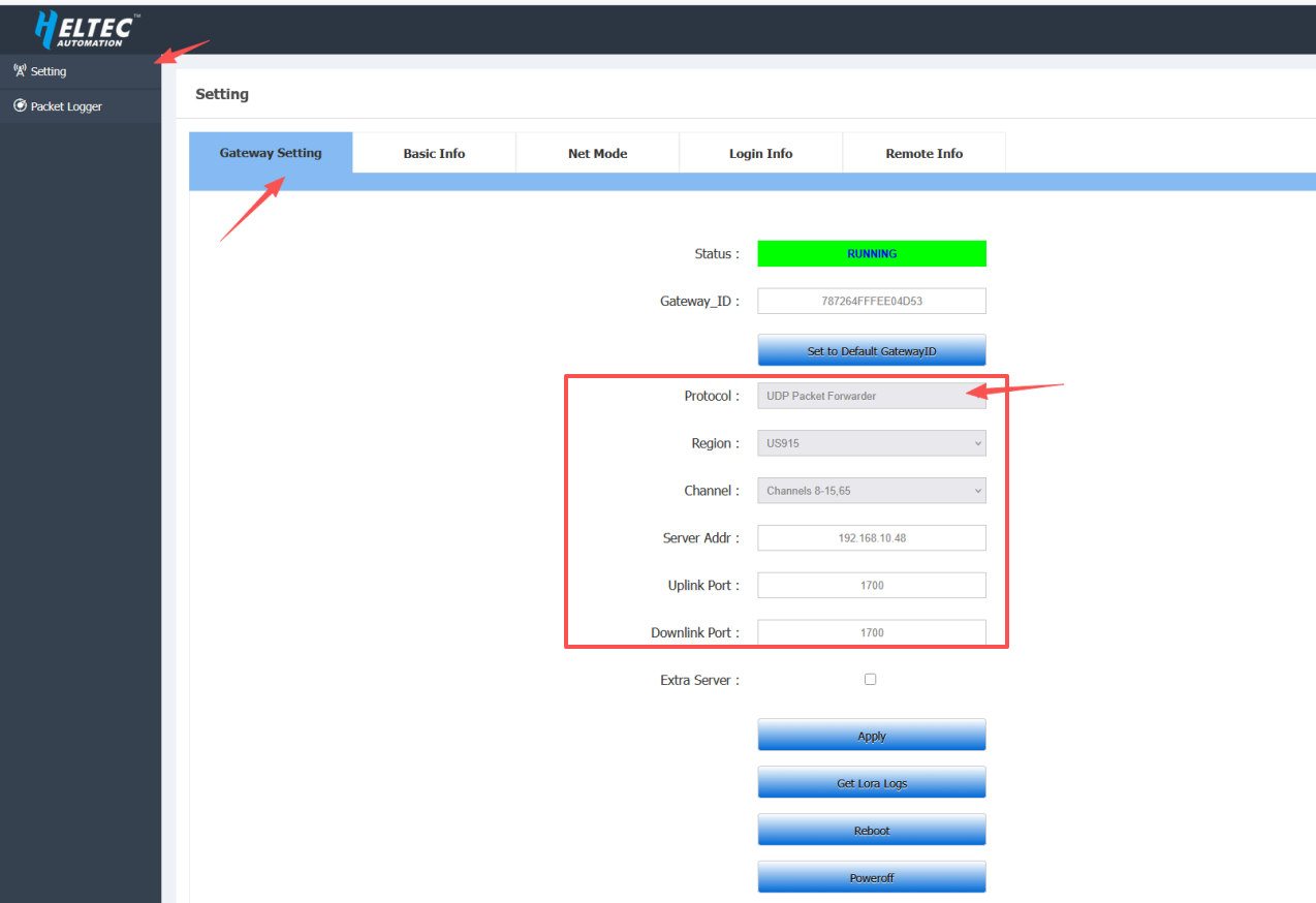 - Protocal: UDP Packet Forwarder