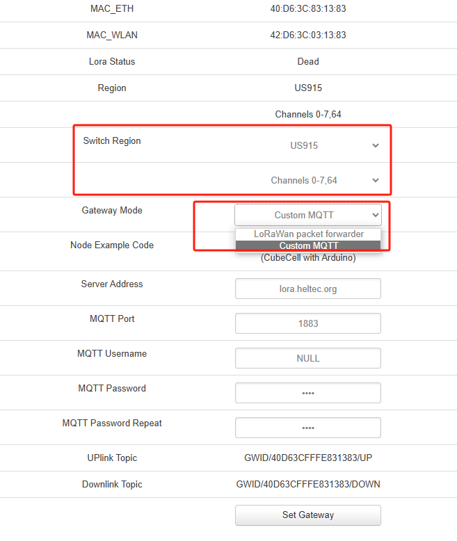 In Gateway Mode option, select "Custom MQTT".