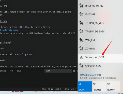 Find the WiFi named Sensor_Hub_xxxx with your PC or mobile phone, connect it.