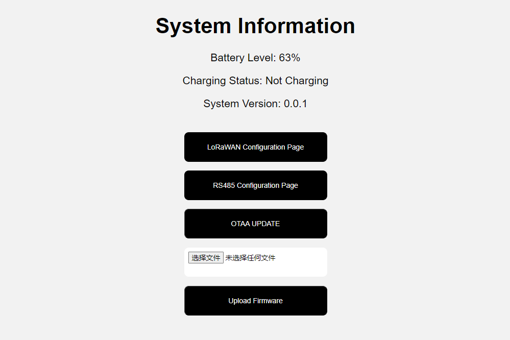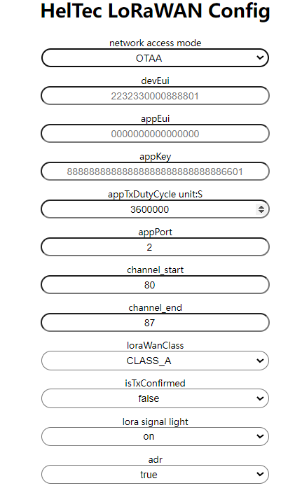 LoRaWAN Configuration Page: Shows the parameter configuration associated with LoRaWAN.
