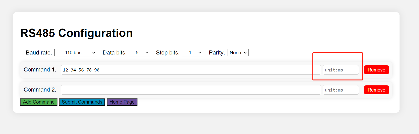 RS485 Configuration Page: This page allows you to set RS-485 polling command.