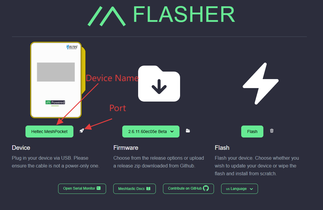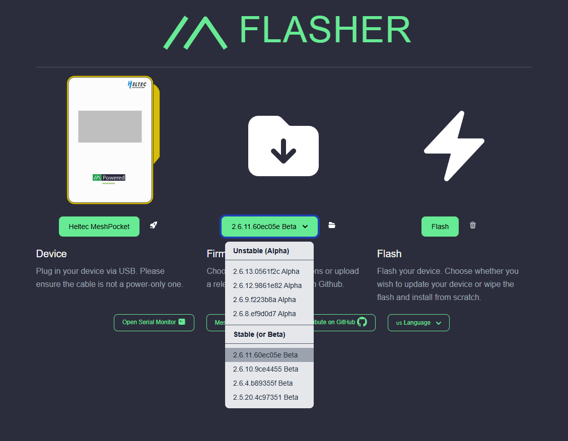 - Open the Meshtastic Web Flasher.
