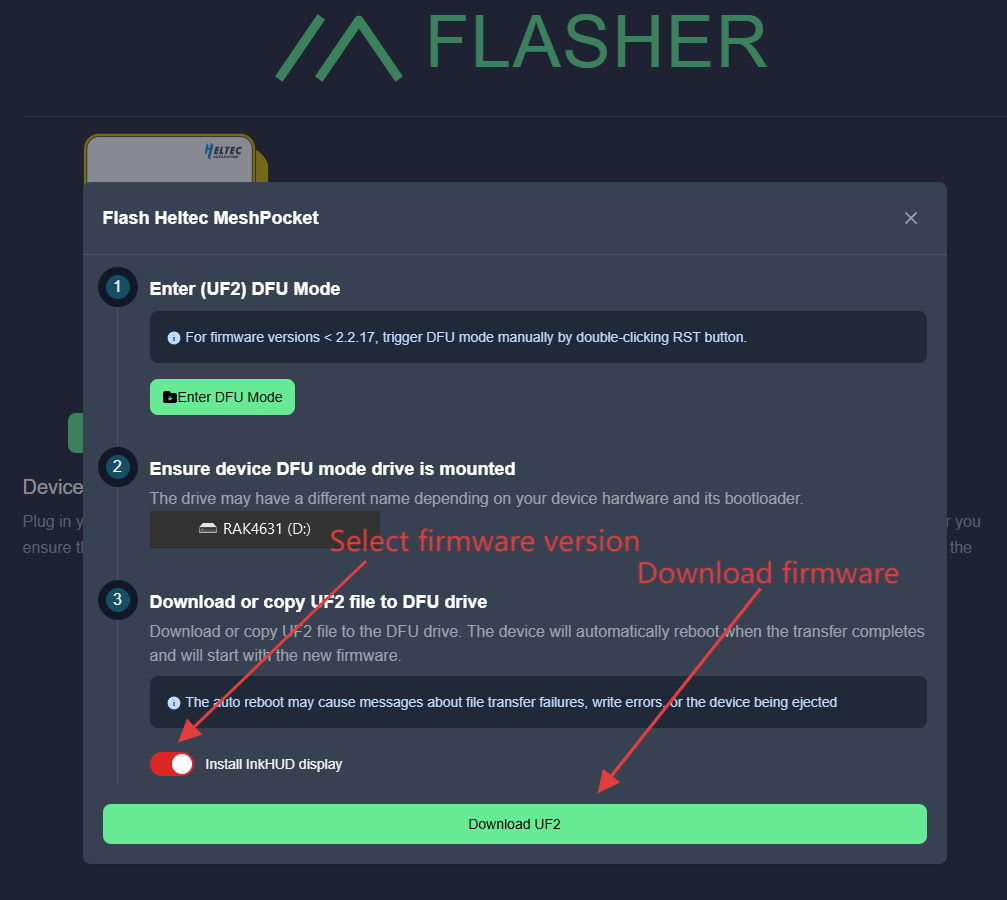- Select the firmware version (recommended: latest Stable).