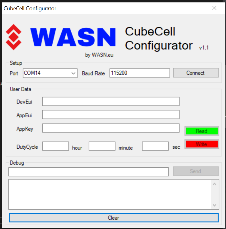 Special thanks WASN made a configurator for CubeCell, now it's only have Windows® support.
