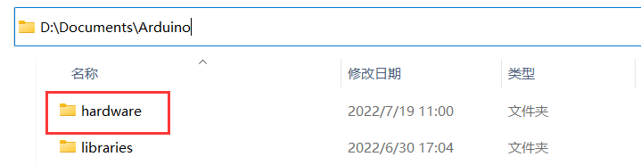 - Open the path. Create a new hardware folder in the Arduino folder. If there is already a "hardware" folder, you don't need to create a new one.