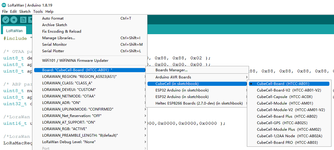 - Install the CubeCell development framework correctly: CubeCell Series Quick Start;