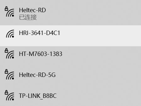Use your phone or computer to search for the device's WiFi hotspot: HRI-3641_XXXX. Connect to this WiFi with the password: Heltec.org.