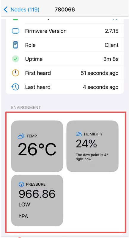 5.The sensor data will then be displayed simultaneously in the App and on the device screen.