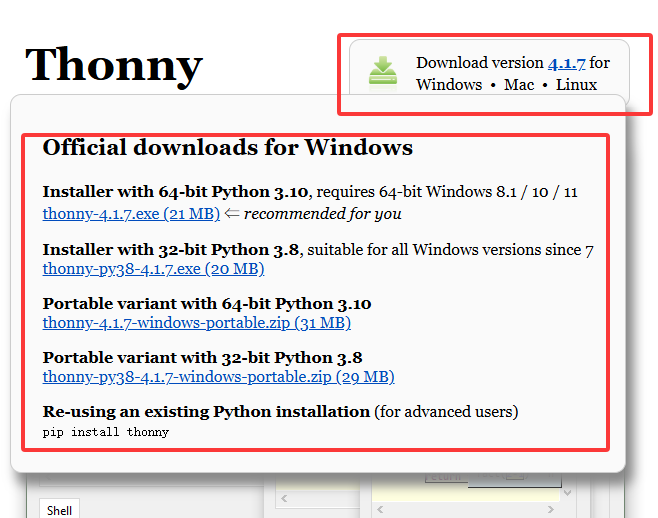 2.Select the required version and double-click the downloaded .exe file to start the installation.