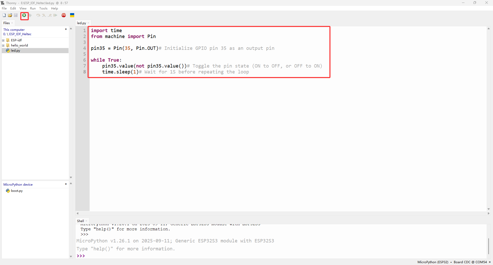 pin35.value(not pin35.value())# Toggle the pin state (ON to OFF, or OFF to ON)