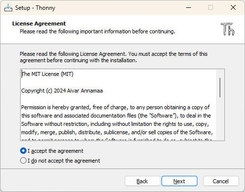 4.Select “I accept the agreement”, then click Next to proceed through the setup wizard.