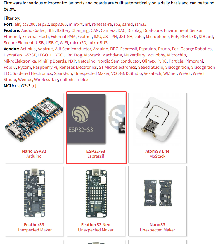 1.Locate and download the MicroPython firmware for the ESP32-S3 from the official MicroPython website.