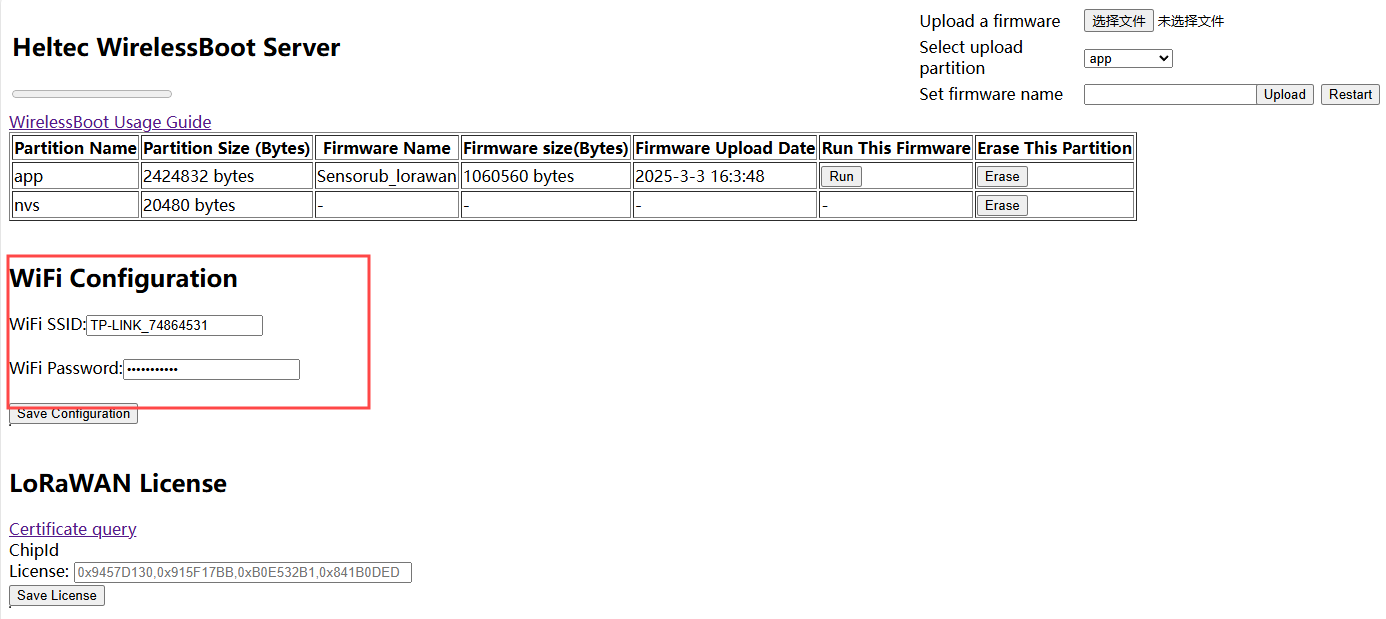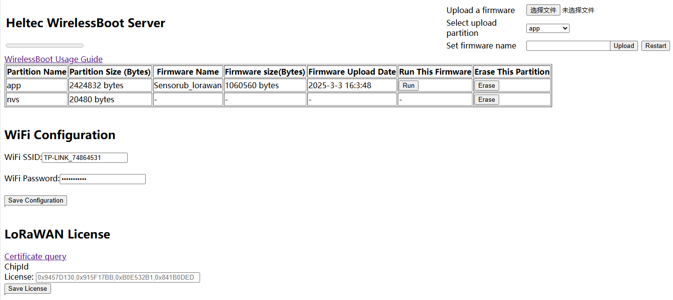 This is the interface for uploading firmware via WirelessBoot.