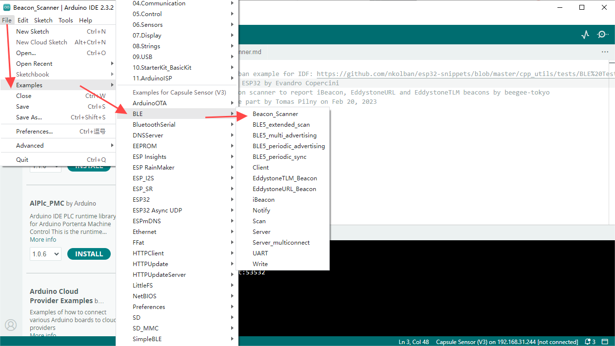 At this point, you can program the device through the IDE. You can choose a sample code or write your own and upload it to your device.