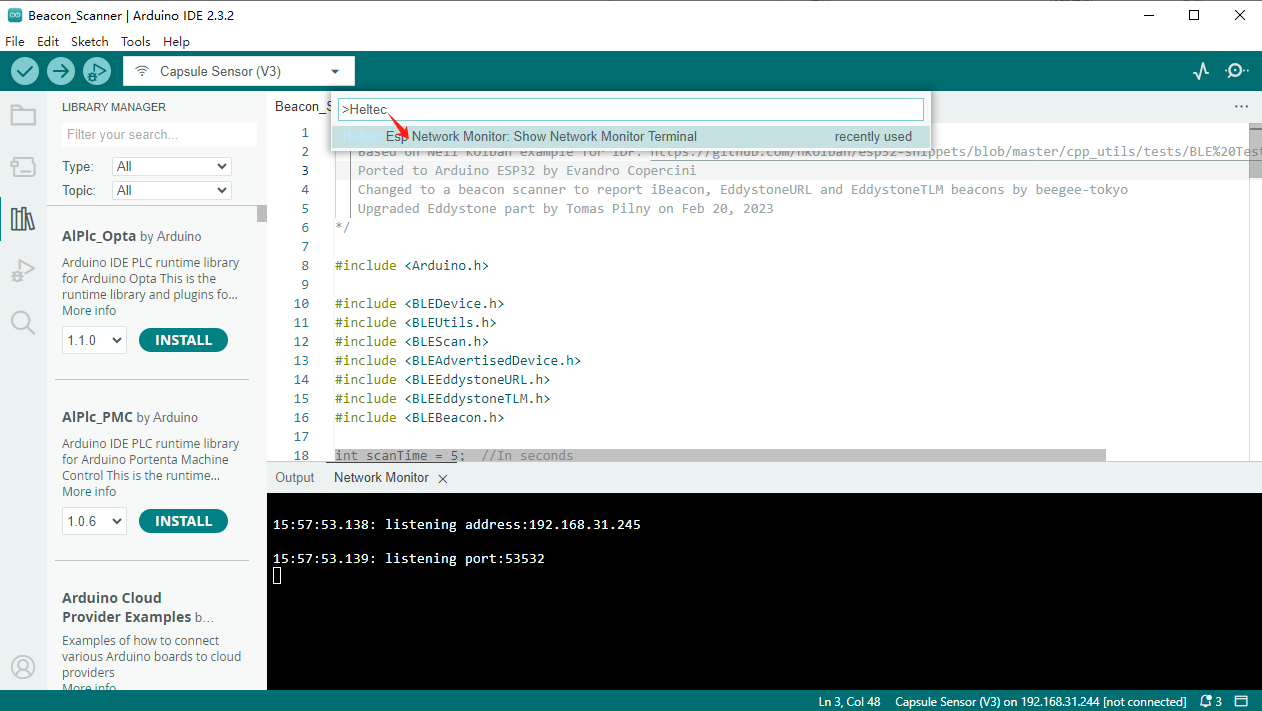 In the dialog box that pops up, search: Heltec Esp Network Minitor.