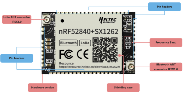 Mesh Node 5262M is a module based on the nRF52840 and SX1262, supporting both Bluetooth and LoRa communication modes. It offers a rich set of pins and interfaces, featuring a 1.27mm pitch stamp hole design, making it compact and easy to integrate into your PCB.