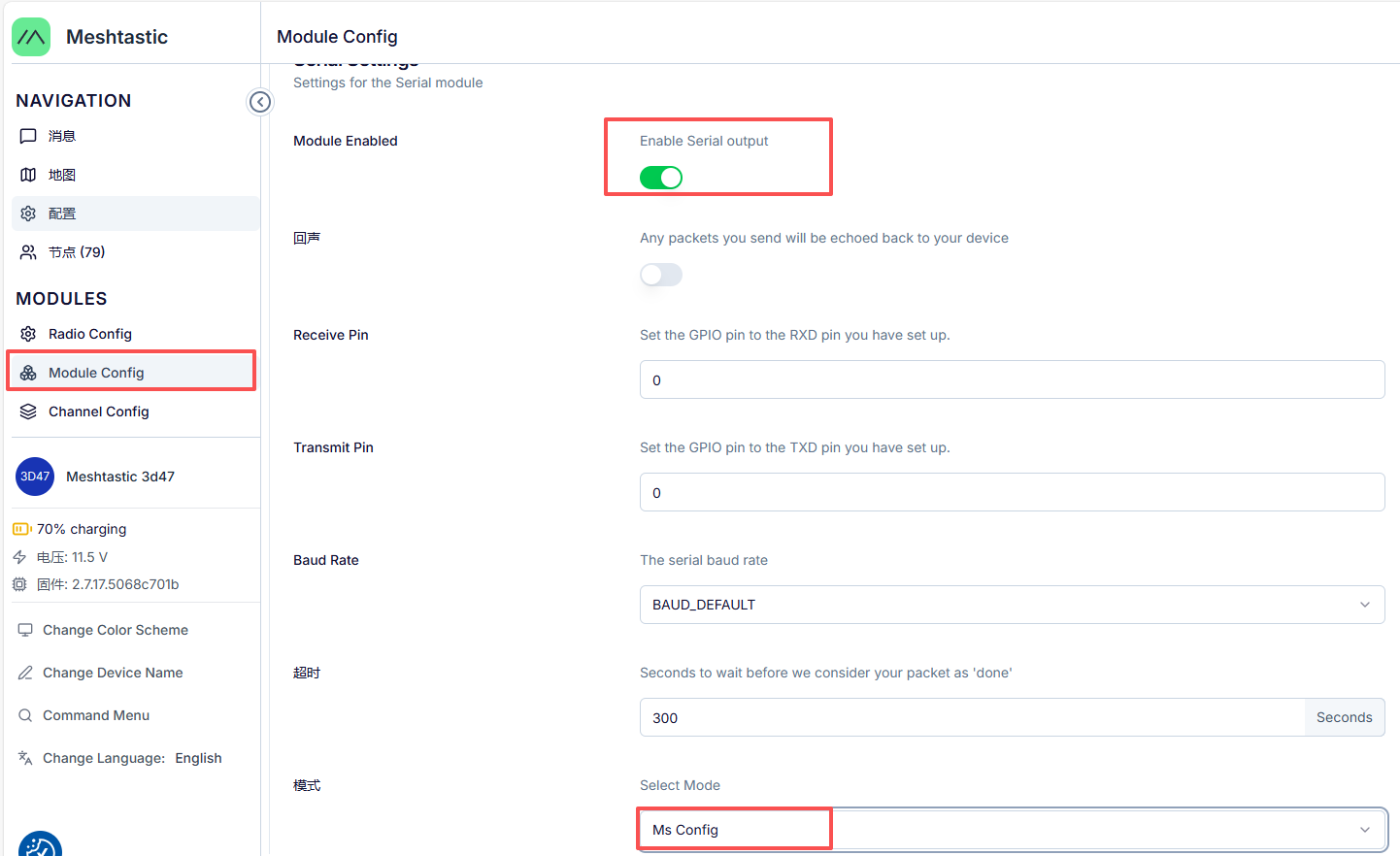 Enabling the Meshtastic serial function allows you to modify relevant parameters directly in the BMS tool while running Meshtastic firmware, without needing to reinstall dedicated BMS firmware.