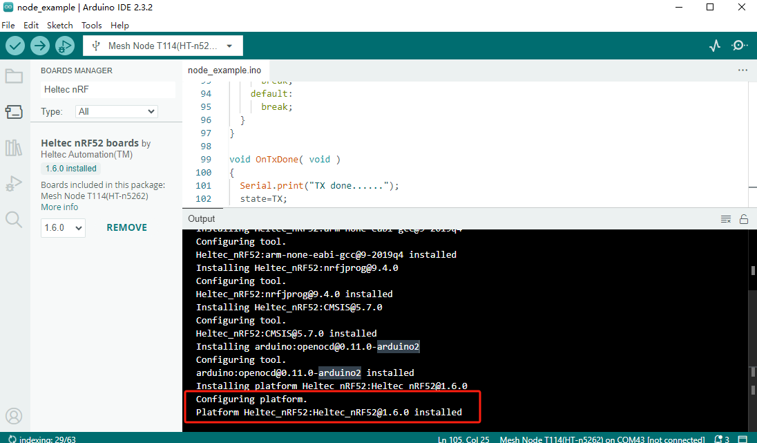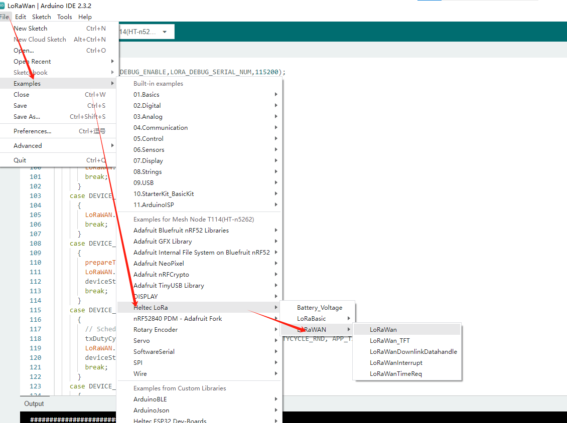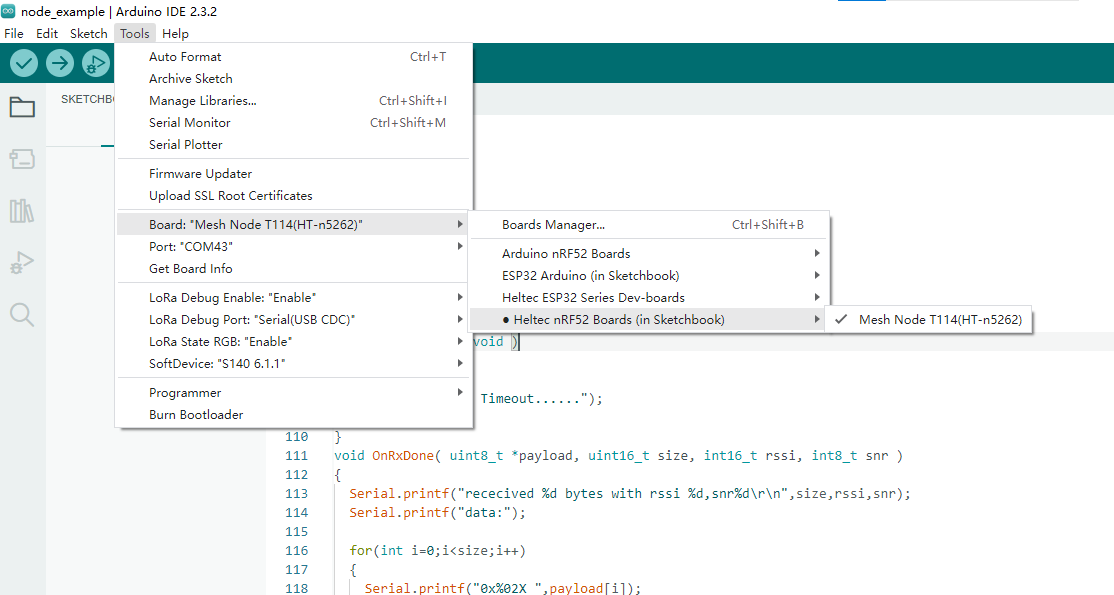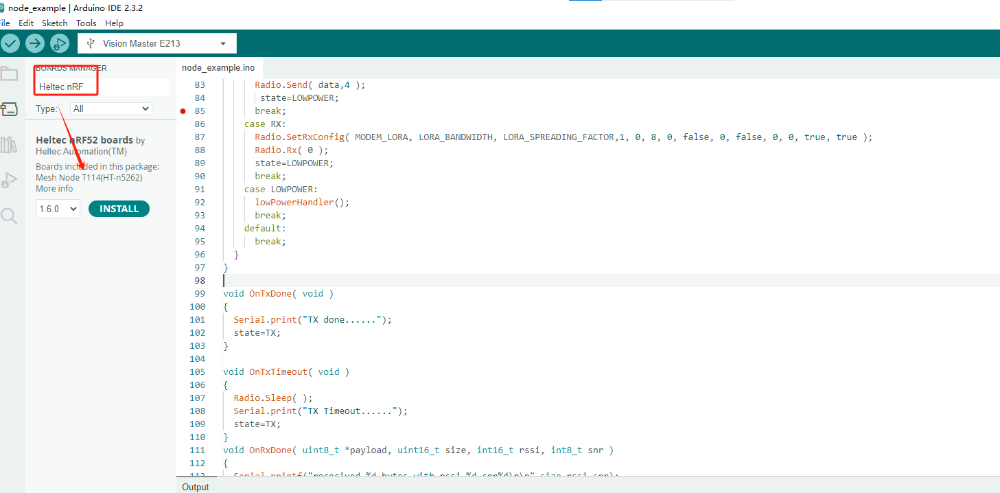 - Install Heltec nRF32 series Arduino development framework. Installation manual please refer to here.