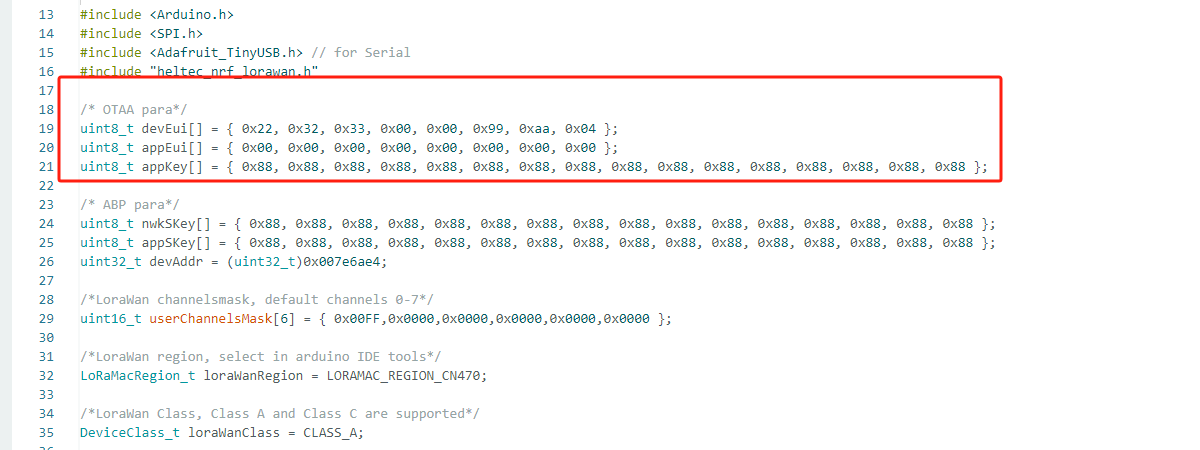 This example uses the OTAA pattern as an example, and for the differences in the ABP pattern, please refer to this link: ABP mode