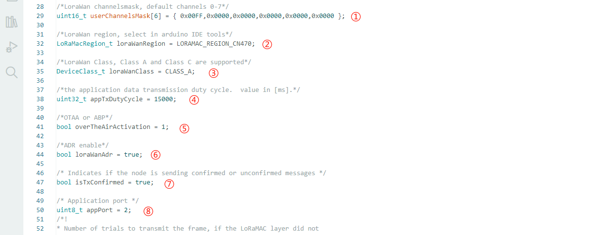 ③ DeviceClass: LoRaWAN Operation Mode, you can type Class_A or Class_C.