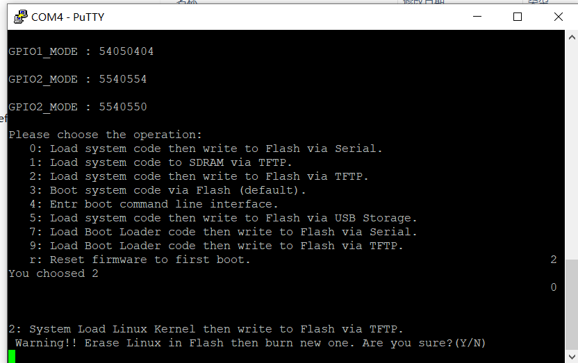After selecting option 2, the following prompt will appear. Enter “Y” using the keyboard.