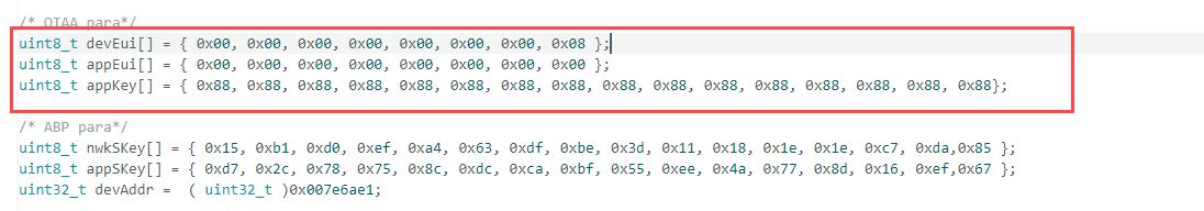 - During node registration, make sure that the AppEUI, DevEUI, and AppKey are identical to those defined in the LoRaWAN code.