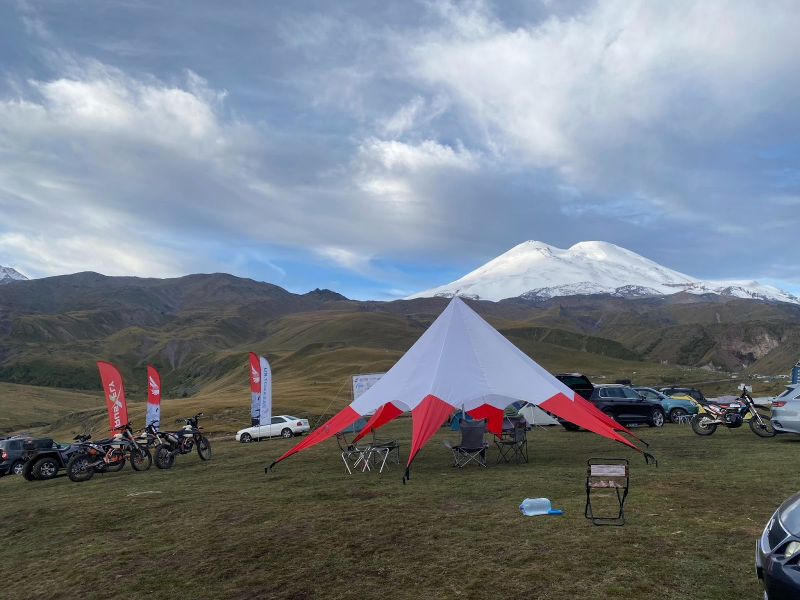 Even though I'm an experienced outdoorsman, I'm a flatlander at heart, more into kayaks and fishing. So, I was a bit shocked by the scale of the mountains where the race was held. For example, for the race start, we drove up to a plateau at 2600 meters above sea level, with an amazing view of Mount Elbrus. I set up my temporary workstation right on the edge of a huge cliff, above a waterfall and a rushing mountain river.