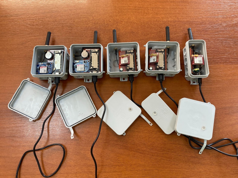 I sacrificed looks for this test project and used external LoRa and GPS antennas because they just work better. In the end, the devices looked a bit like gadgets from Counter-Strike, and I was a little worried about what the police would think if they saw them in my trunk. I lost a lot of time writing the gateway firmware. I had issues with some "blue" modules and ended up standardizing on the "red" (SIM8xx) ones.